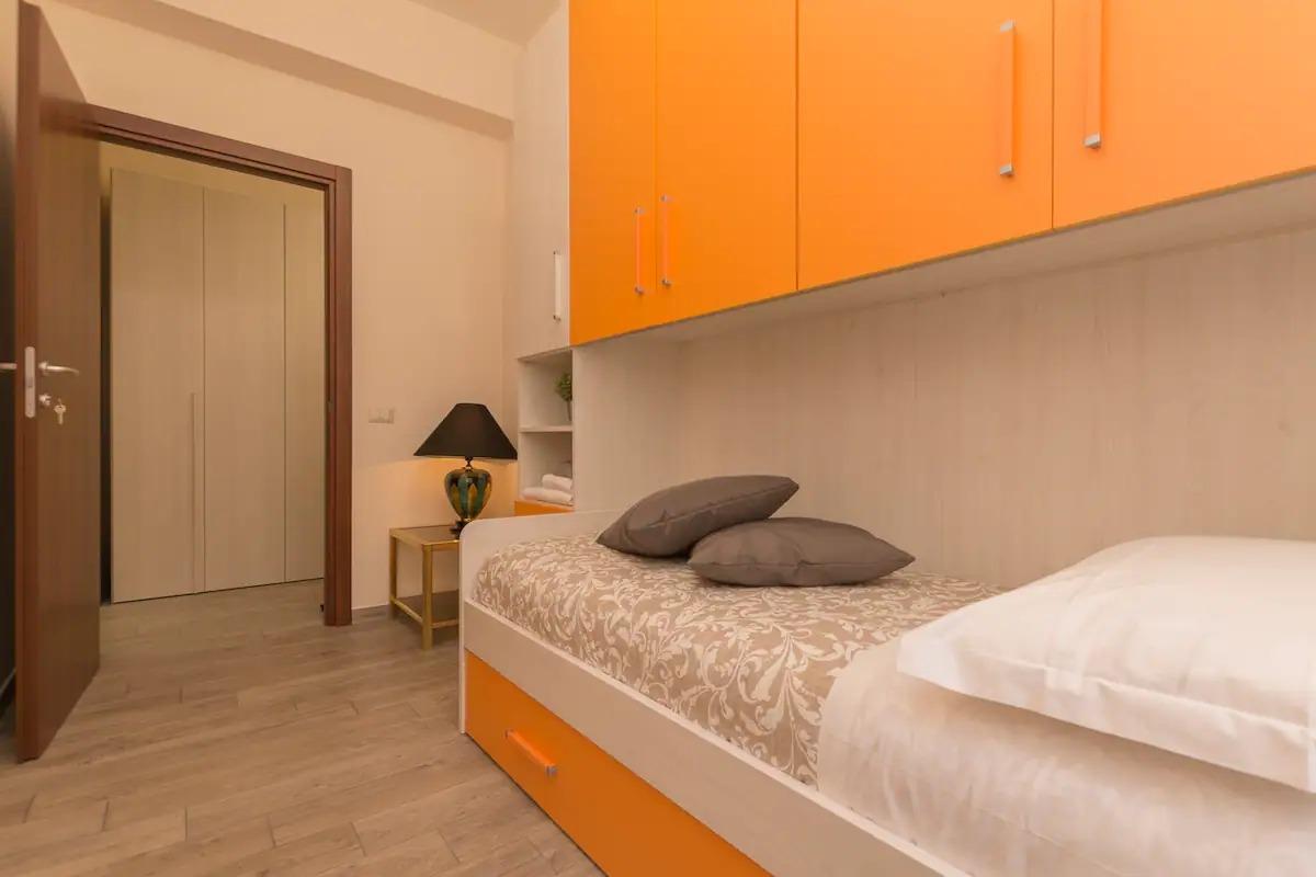 L’appartamento, di 65 mq, è situato al piano terra e garantisce tranquillità grazie alla sua recente ristrutturazione. Dispone di due camere da letto doppie, un soggiorno con divano letto, una cucina completamente attrezzata, un bagno con doccia e una spaziosa terrazza privata arredata con ombrellone e poltrone, ideale per rilassarsi all’aperto.